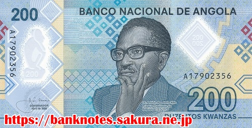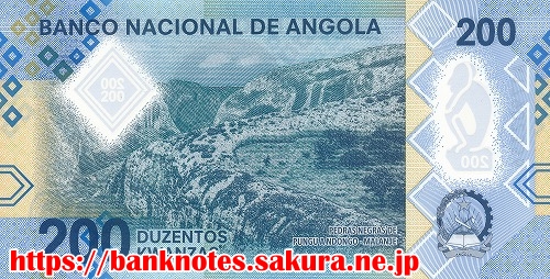 表面の肖像は、初代大統領「アゴスティニョ・ネト Dr.Antonio Agostinho Neto (1922-1979) 」です。裏面には奇岩「プンゴ・アンドンゴの黒い岩 PEDRAS NEGRAS DE PUNGU A NDONGO-MALANJE」が描かれています。
