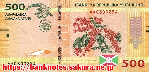 表面には小舟に乗り漁をする様子が描かれています。裏面には、ワニとコーヒーの実が描かれています。