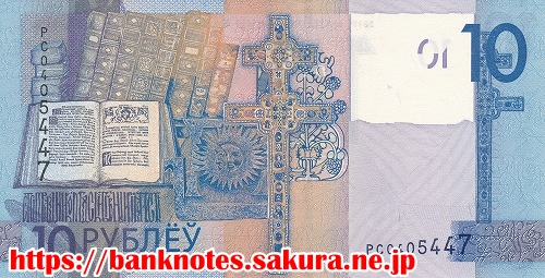 表面にはポラツクにある「救世主顕栄聖堂 Transfiguration Church in Polatsk」が描かれています。裏面のテーマは「啓蒙と印刷 enlightenment and printing」となっています。