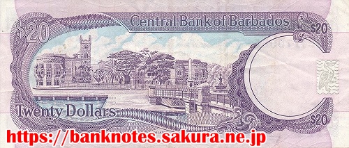 表面の肖像は、白人以外で初の下院議員になった「サミュエル・プレスコッド Samuel Jackman Prescod (1806-1871) 」です。裏面は、首都ブリッジタウンのトラファルガー・スクエアです。