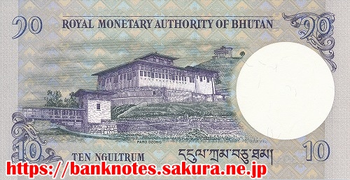 表面の肖像は「ジグメ・シンゲ・ワンチュク現国王(現在)」です。裏面の宮殿のような建物は『パロ・ゾン』です。