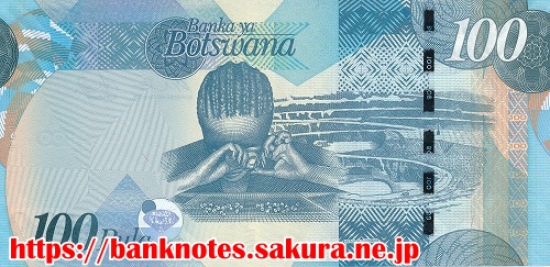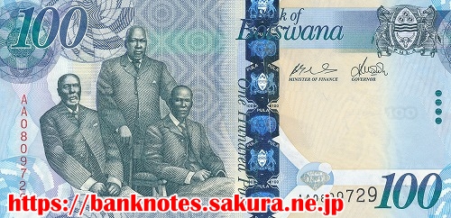 表面の肖像、右がカーマ三世 KHAMA Vです。(中央)Bathoen I、(左)Serele Iです。裏面にはダイヤモンド鉱山で発掘した鉱石を鑑定している女性が描かれています。