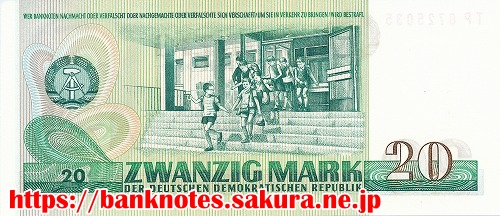 表面の肖像は「ヨハン・ヴォルフガング・ゲーテ Johann Wolfgang von Goethe (1749-1832) 」です。ドイツ文学界の巨匠。後世の文学者や哲学者に与えた影響は計り知れない。美食家で大食い、しかもワイン通。老年期はブクブクと醜く太っていたという。裏面には、子供たちが下校する様子が描かれています。