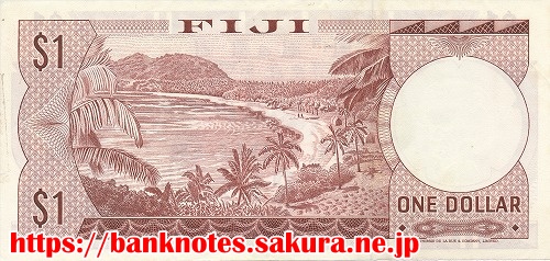 1974年まで発行された1ドル紙幣です。裏面は「South Yasewas」の風景が描かれています。