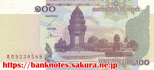 表面には立派な「パゴタ」が描かれています。裏面には、学校らしき建物と多くの子供たちが描かれています。