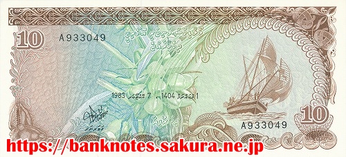 リゾート地として最近日本人にも人気のモルディブの紙幣です。裏面は村の様子が良く描かれています。Araiさんのページにもモルディブの紙幣がありますので見てみて下さい。