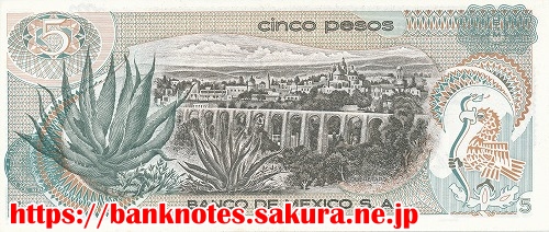 肖像の説明には「LACORREGIDORA」と説明が入っています。裏面には、ケレタロ市にある18世紀に建造された水道橋が描かれています。74のアーチを持つそうです。
