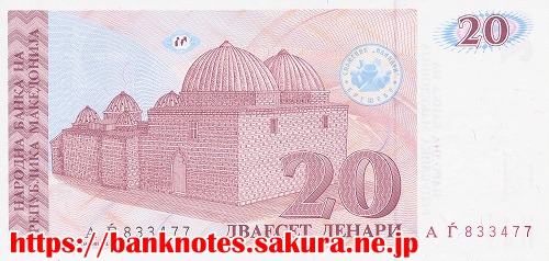 表面に描かれているのは、首都スコピエにある風呂の建物のようです。