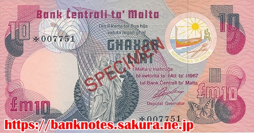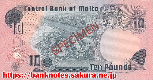 イタリアのシチリア島に近い地中海の島国で、マルタ、ゴゾ、コミノという三つの島から構成されます。淡路島の半分ぐらいの面積しかない小国です。表面右上には、ディーサと呼ばれるマルタ古来のカラフルな漁船が描かれています。また中央には海神ネプチューンが描かれています。裏面には港が描かれているすが、セント・エルモ砦跡?だそうです。