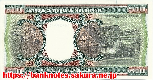 裏面には、サトウキビか何かを収穫する人々が描かれています。右側には大きな工場が描かれています。