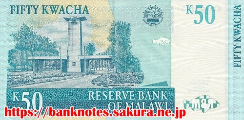 表面の肖像は、建国当時の英雄、反植民地闘争の先駆者、民族主義者の「ジョン・チレンベ John Chilembwe (1871-1915) 」です。1月15日はジョン・チレンベの日として祝日になっています。裏面には、ブランタイヤにある「独立アーチ Independence Arch」が描かれています。