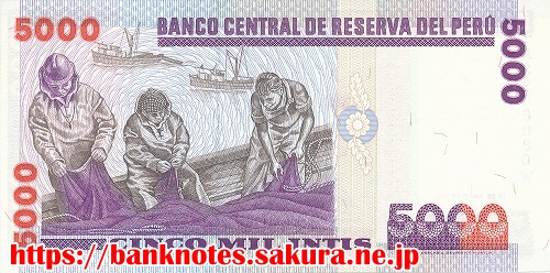 表面の肖像は「ミグエル・グラウ Migel Grau (1834-1879) 」です。裏面は漁夫の様子が良く描かれています。