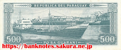 表面の肖像は、第四代大統領「ベルナルディーノ・カバレーロ将軍」です。海の無い国なのに船の絵が描かれているのは何か変な感じがします。