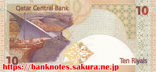 裏面には、大きく張り出した帆をかけた舟が描かれています。