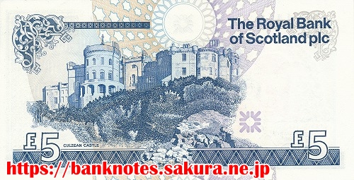 表面の肖像は、ロイヤルバンクの初代総裁「Lord Ilay卿」です。裏面に描かれているのはとクルジアン城です。5つの城シリーズとして他の金種にもそれぞれ城が描かれています。