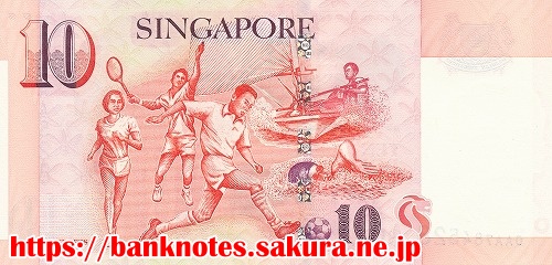 表面の肖像は、初代大統領「 (Yusof Bin Ishak) ユソフ・ビン・イサーク」です。裏面にはテニスやサッカーなどのスポーツの様子が描かれています。