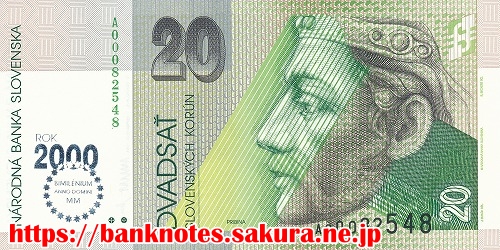 ミレニアムを記念して発行された紙幣でデザインは同じです。表面右の余白部分に「ROK2000」と円形の20個の星が描かれています。