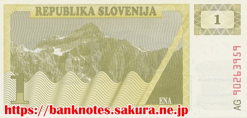 旧ソビエト連邦より分離独立したスロベニア共和国の紙幣です。たまに体操選手の名前でこの国の名前を耳にすることはありますが、どこにあるかもほとんどの日本人は知らないのでは?