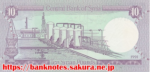 表面のアラビア文字を見ただけではどこの国の紙幣なのかも解りません。裏面は石油採掘工場の絵でしょうか?なかなかこの国を現しています。