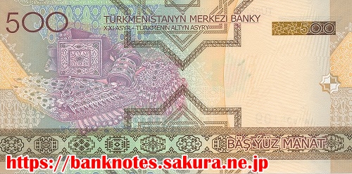 表面の肖像は、初代大統領「サパルミラト・ニヤゾフ Saparmurat Niazov (1940-2006)」です。レニングラード工科大学を卒業後、1962年に共産党に入党後、党の要職を歴任し大統領までのぼりつめた人物です。1990年に大統領に就任し、2002年国民議会の決定により終身大統領になっています。