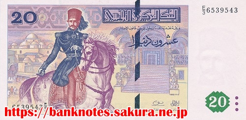 表面の肖像は「 Kheireddine Et-Tounsi (1822-1889) 」です。裏面には、大きな鳩、農作業をする人や電車が描かれています。