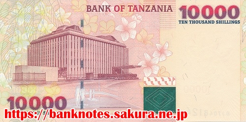 表面には、立派な牙を持ったアフリカ象が描かれています。裏面には、タンザニア中央銀行「Bank of Tanzania」の建物が描かれています。
