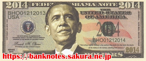 表面は第44代アメリカ合衆国大統領「バラク・フセイン・オバマ Barack Hussein Obama (1961- )」です。オバマ元大統領は二期・8年間大統領任期を務めました。肖像は、2014年頃?のものと思われます。