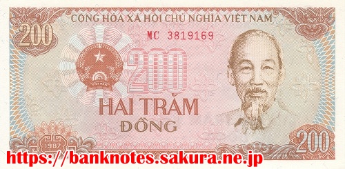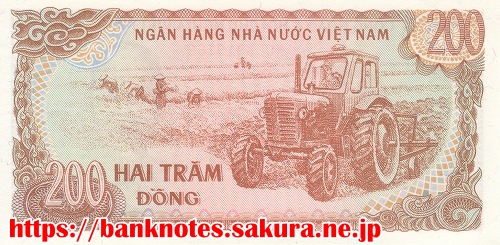 表面の肖像は、ベトナム社会主義共和国の創設者「ホーチミン Ho Chi Minh (1890-1969) 」です。裏面には、トラクターと農作業する人々が描かれています。