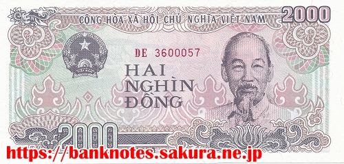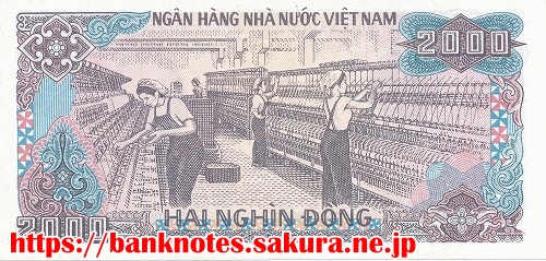 旧南ベトナムの首都だった「サイゴン」陥落して、今の「ホーチミン市」になっています。表面の肖像がそのホーチミンさんです。裏面には、紡績工場の様子が描かれています。