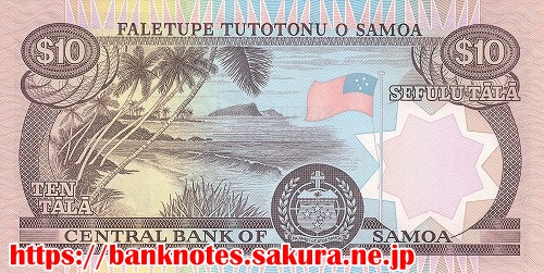 表面には、蛮刀でバナナの収穫をしている男性が描かれています。裏面には、椰子の木と海岸線が描かれています。